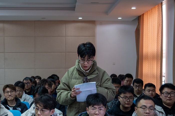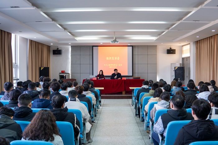 2月26日下午,在南校区怀德楼报告厅,电气工程学院学生一支部组织召开2025年春学期第一次支部大会暨2024年度组织生活会,进行党员民主评议。活动由学生一支部书记凌悦同志主持,该支部98名党员参会。学院党委副书记江滔同志以普通党员身份参加支部组织生活会。