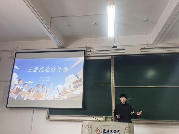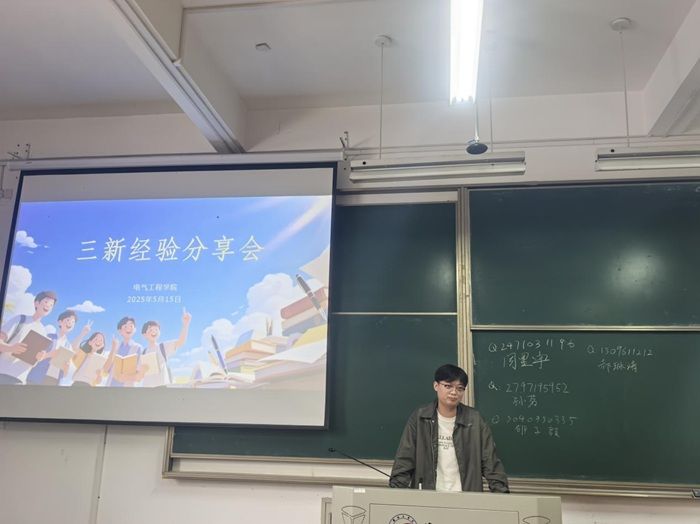 为助力大三学生深入了解江苏三新供电服务有限公司,精准把握行业就业形势,明确未来职业择业方向,5月15日上午,电气工程学院联合“电翼护航”一站式学生社区在南校区博学楼C103教室举办“电燃职梦,勇拓新途”三新就业经验分享会。会议由学院大三专职辅导员张馨月、王怀鹏主持,四位签约拟就职江苏三新供电服务有限公司的2025届毕业生分享求职经历和就业经验,2022级学生代表40余人参加。