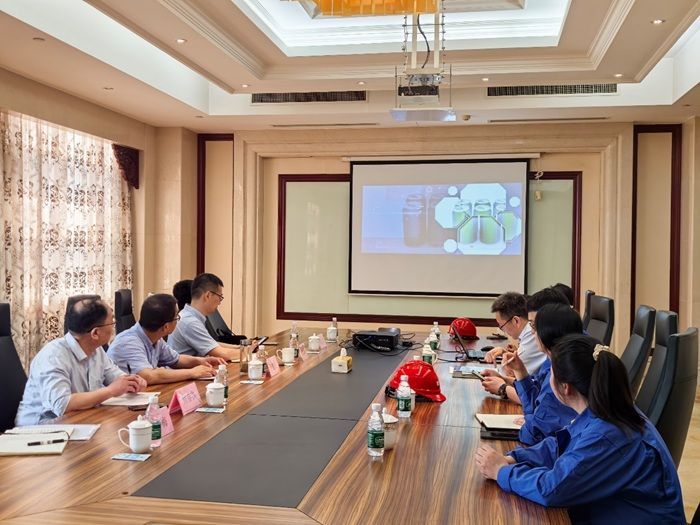 在江苏新柯玛材料有限公司会议室,于建业、阚加荣一行与公司副总经理徐瑞军等进行座谈交流,了解企业的生产经营状况、人才需求情况以及未来产业发展规划。于建业介绍了学院的基本情况、办学条件、师资力量、实习就业等方面的情况,阚加荣就学院办学特色、学科建设和人才培养以及毕业生生源情况等进行了着重介绍,希望通过此次走访,进一步深化校企合作,推动产教融合,助力学生高质量就业。徐瑞军对于公司战略规划、人才需求、人才培养模式、招聘流程、薪资待遇、晋升机制等进行了介绍,期待通过校企合作的方式吸引更多优秀的学子加入企业,从而共同推动企业发展。毕业生校友介绍了自己的工作和生活情况,对学校的教学、实践及人才培养等方面提出了建议。